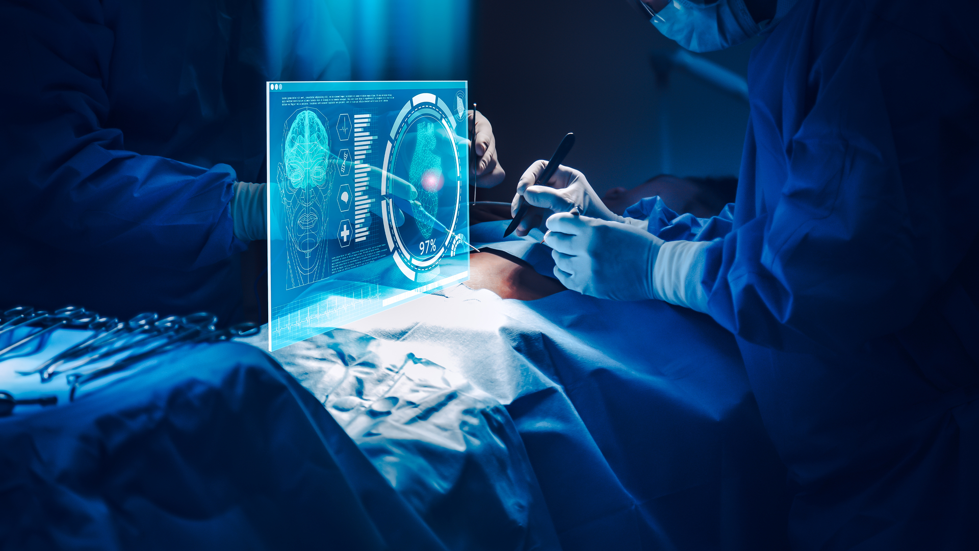 Inserted in a highly technological context such as the integrated operating room, this device would make available and accessible to the surgeon all the patient's personal information, his past clinical history, his laboratory reports and both his pre-operative and intra-operative imaging. At the same time, this device would allow the surgeon to govern the main instruments used in the OR.