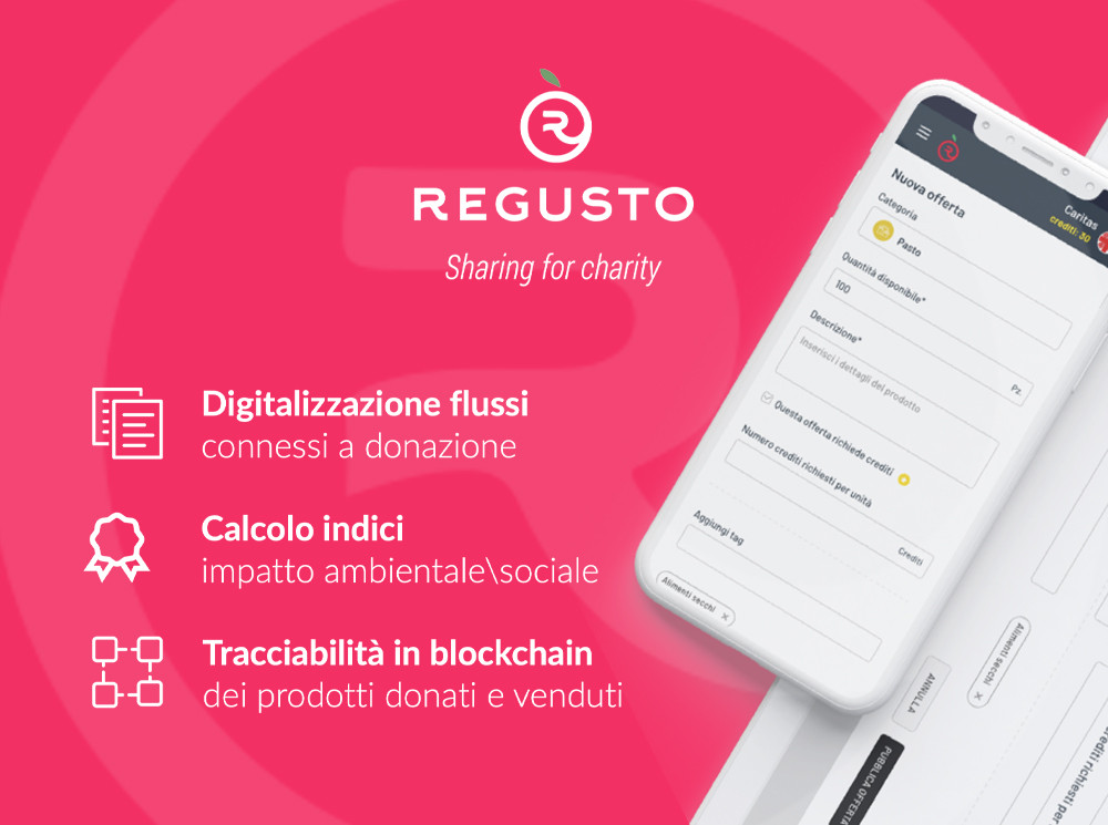 Regusto è la prima piattaforma tecnologica a tracciare in maniera sicura le donazioni, attraverso l’utilizzo di tecnologie blockchain ed analytics personalizzati: un circuito virtuoso tra chi dona e chi riceve per combattere lo spreco in modo consapevole, tracciabile e sostenibile.