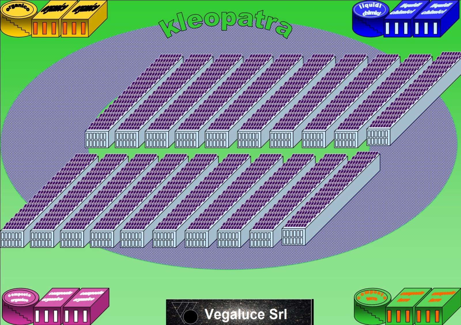 Il progetto Kleopatra da la possibilità di sfruttamento dei terreni agricoli e no , capannoni abbandonati per un produzione eco-sostenibile dei prodotti agroalimentari e zootecnici con un integrazione 100% dei tutti sistemi di risparmio energetico Con questo progetto che si garantirà in tempi ridotti la produzione e constante tutto l'anno a Km0 si garantisce un sviluppo demografico e apertura di tanti posti di lavoro In una superficie abbiamo tre prodotti AGROALIMENTARE - ZOOTECNICO -ENERGIA RINNOVABILE