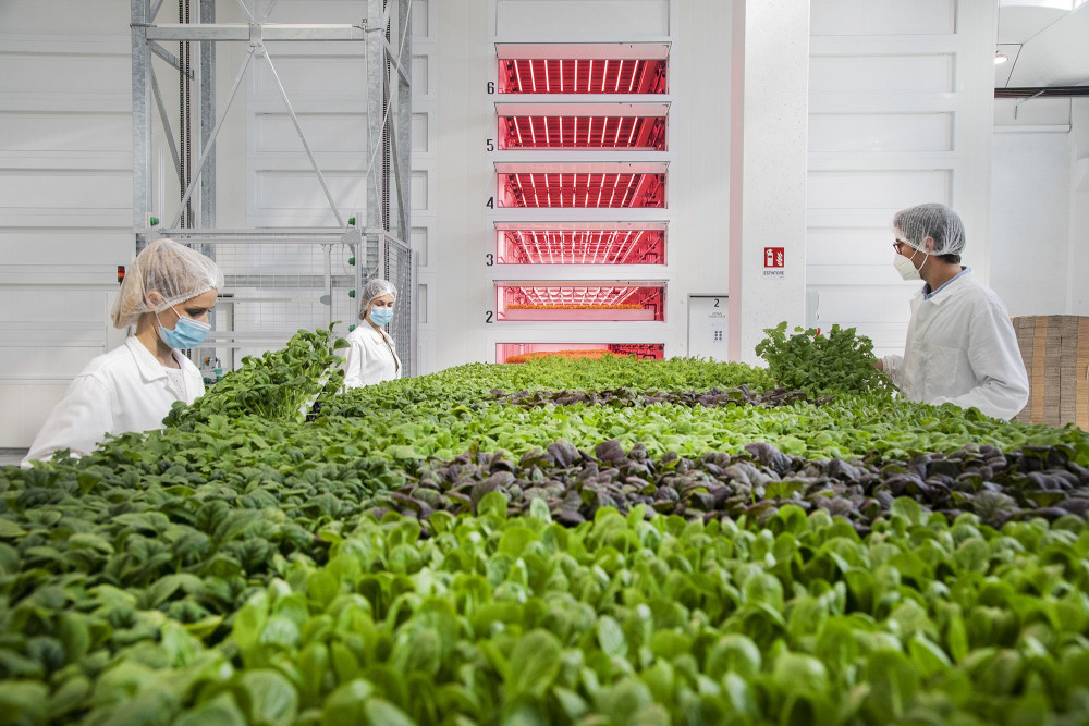 L'azienda ha progettato una struttura all'avanguardia per la coltivazione con un ambiente, illuminazione, irrigazione e automazione ottimizzati. Utilizza metodi proprietari basati sulla visione artificiale e dispositivi di imaging iperspettrale per monitorare e ottimizzare la crescita delle piante. È stato sviluppato un software proprietario per monitorare, tracciare e analizzare i cicli di produzione. Rispetto ai sistemi orizzontali, è possibile ottenere un'area di coltivazione più ampia: meno estesa in orizzontale ma più estesa in altezza, con un rendimento più elevato per metro quadrato coltivato rispetto all'agricoltura intensiva tradizionale. L’acqua viene distribuita in modo intelligente dell'acqua con un sistema di drenaggio efficiente lungo tutta la lunghezza e larghezza dei contenitori di coltivazione. Tutte le piante dispongono continuamente di sufficiente acqua e di una precisa qualità di nutrienti che vengono distribuiti attraverso una soluzione.